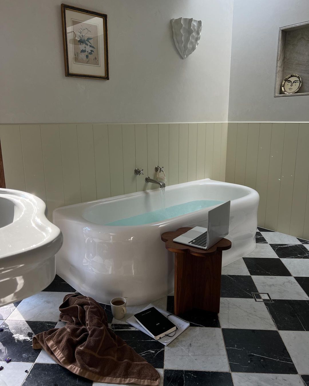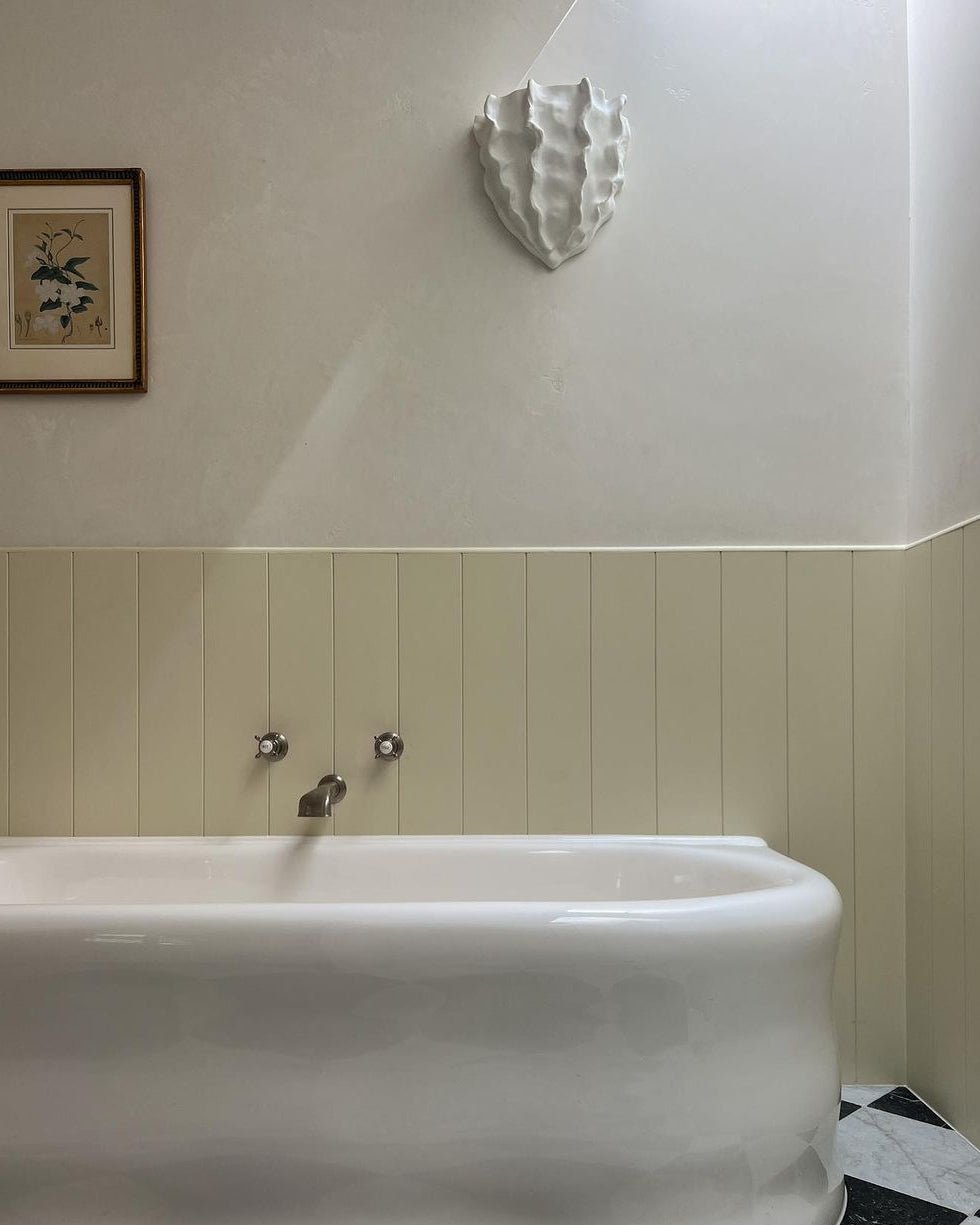 Organic Sculpted Wall Sconce Styled in a Modern Farmhouse Bathroom