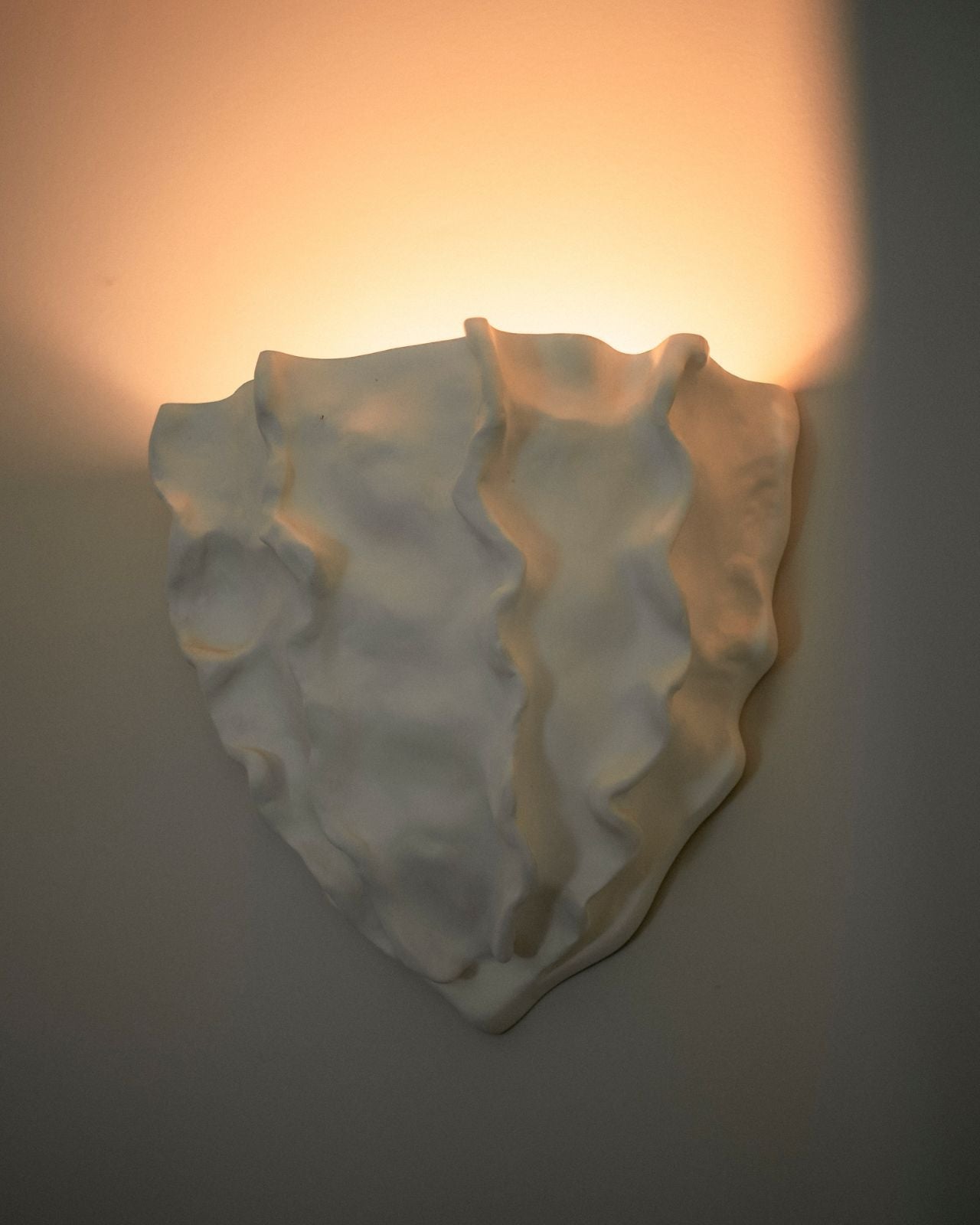 Inspired by the beauty and natural form of the ribbed surface of a shell, the Organic Sculpted Wall Sconce will bring an elevated coastal luxe feel to an interior space. Crafted from plaster, the organic and textural qualities of this unique wall light will complement a range of interior spaces including in a living area, beside a bed, or as a statement in a hallway.