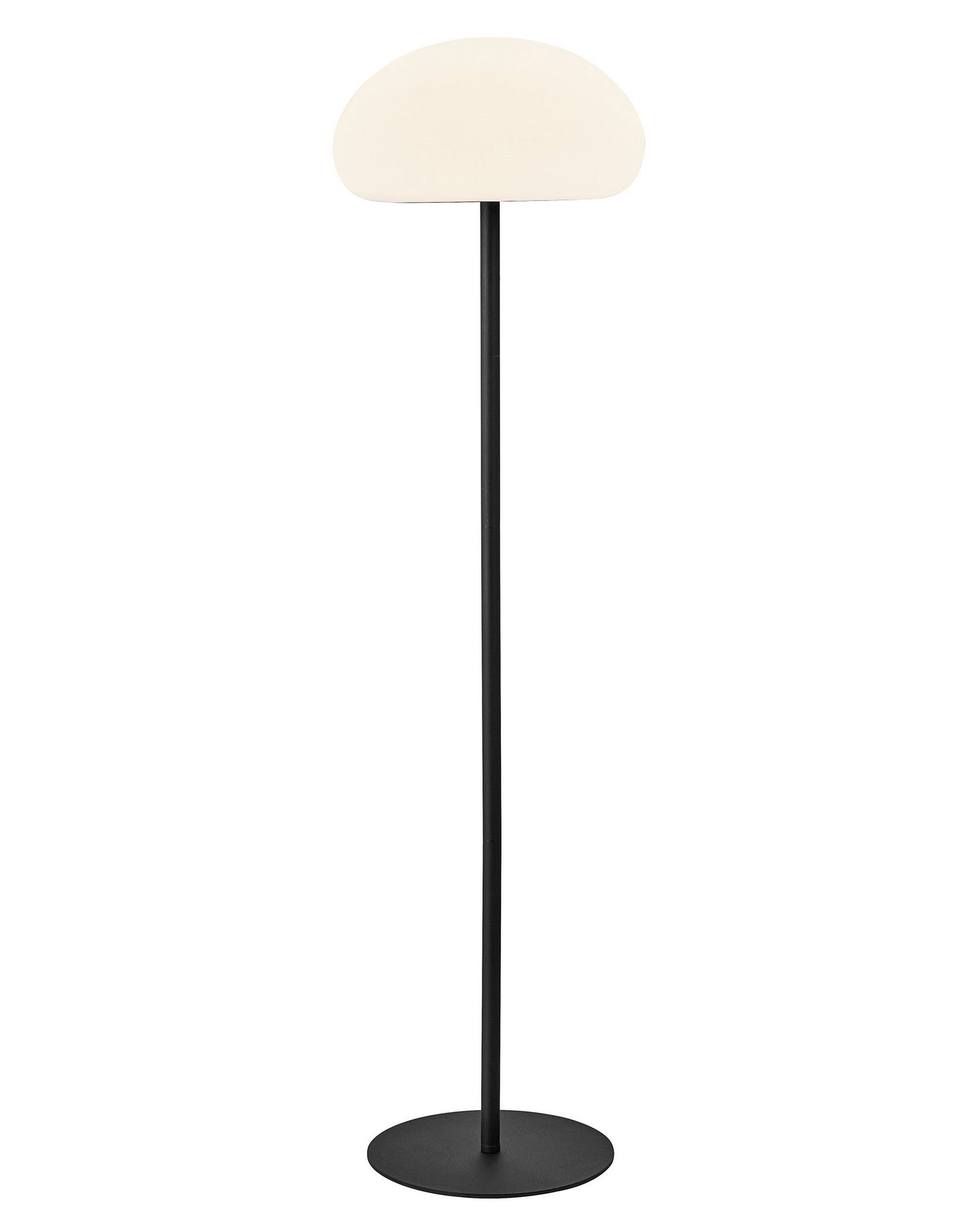 With the combination of soft curves created by the white diffuser and sleek tall black base, this Ovate Portable Floor Lamp offers an effortlessly modern take on lighting. Its white diffuser radiates an ambient glow perfect for illuminating indoor and outdoor areas. Use this floor lamp to enhance any modern outdoor terrace, reading space, or bedroom.