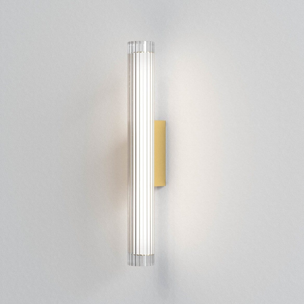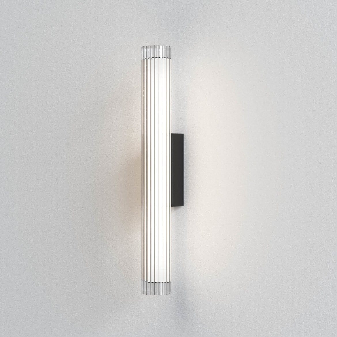 This stunning polished chrome wall light complements modern interiors beautifully. Its sleek shape is made from ribbed glass that beautifully refracts the light. Ideal for placement beside a master bed, hallway or living area. Available in Matte Gold, Matte Black and Polished Chrome finishes.