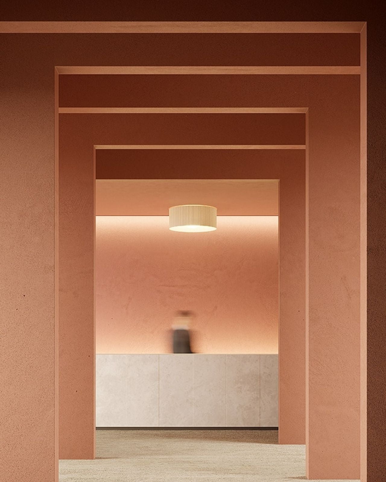 Minimalist Sphere Orb Pendant hanging in a modern interior with a staircase and chair