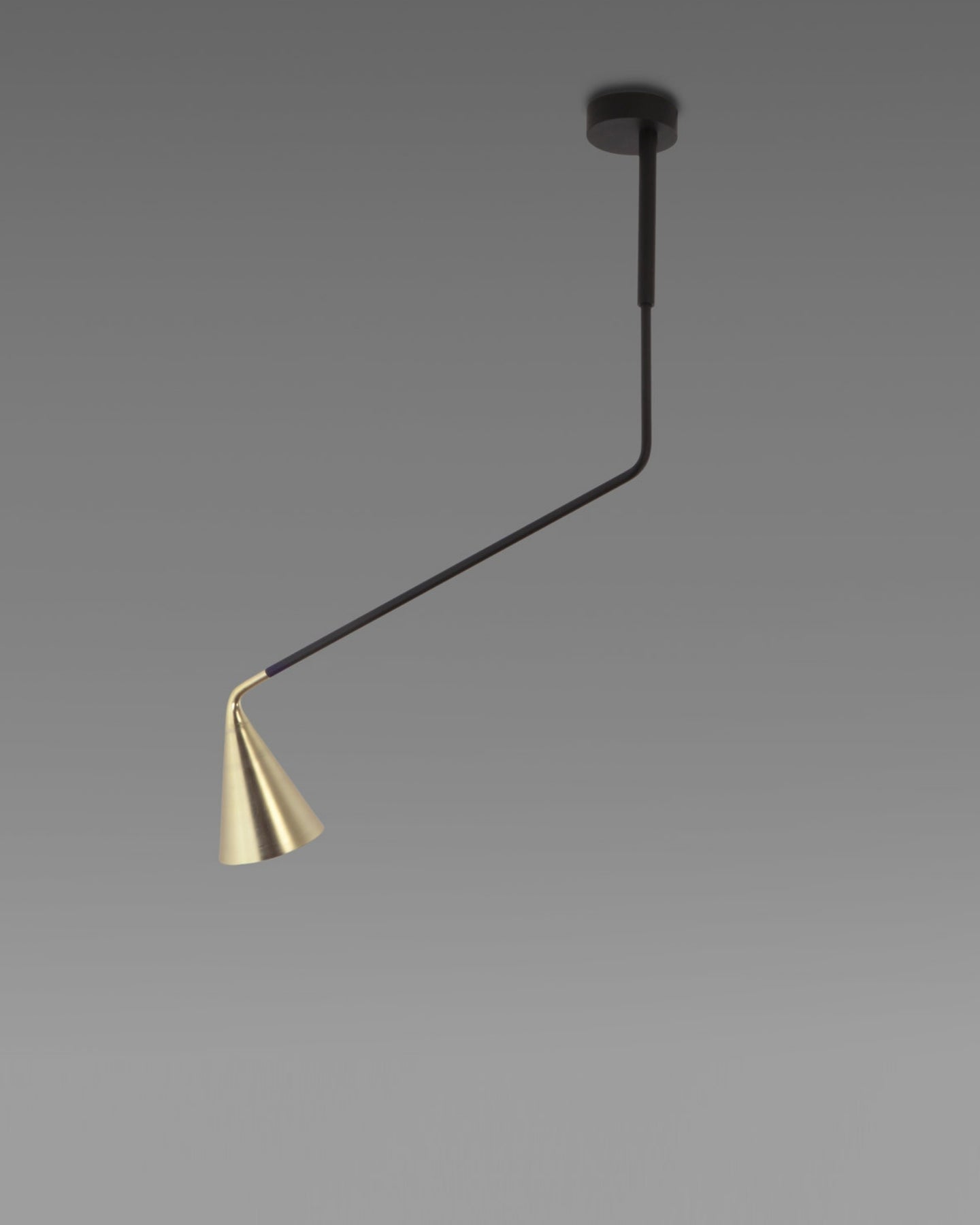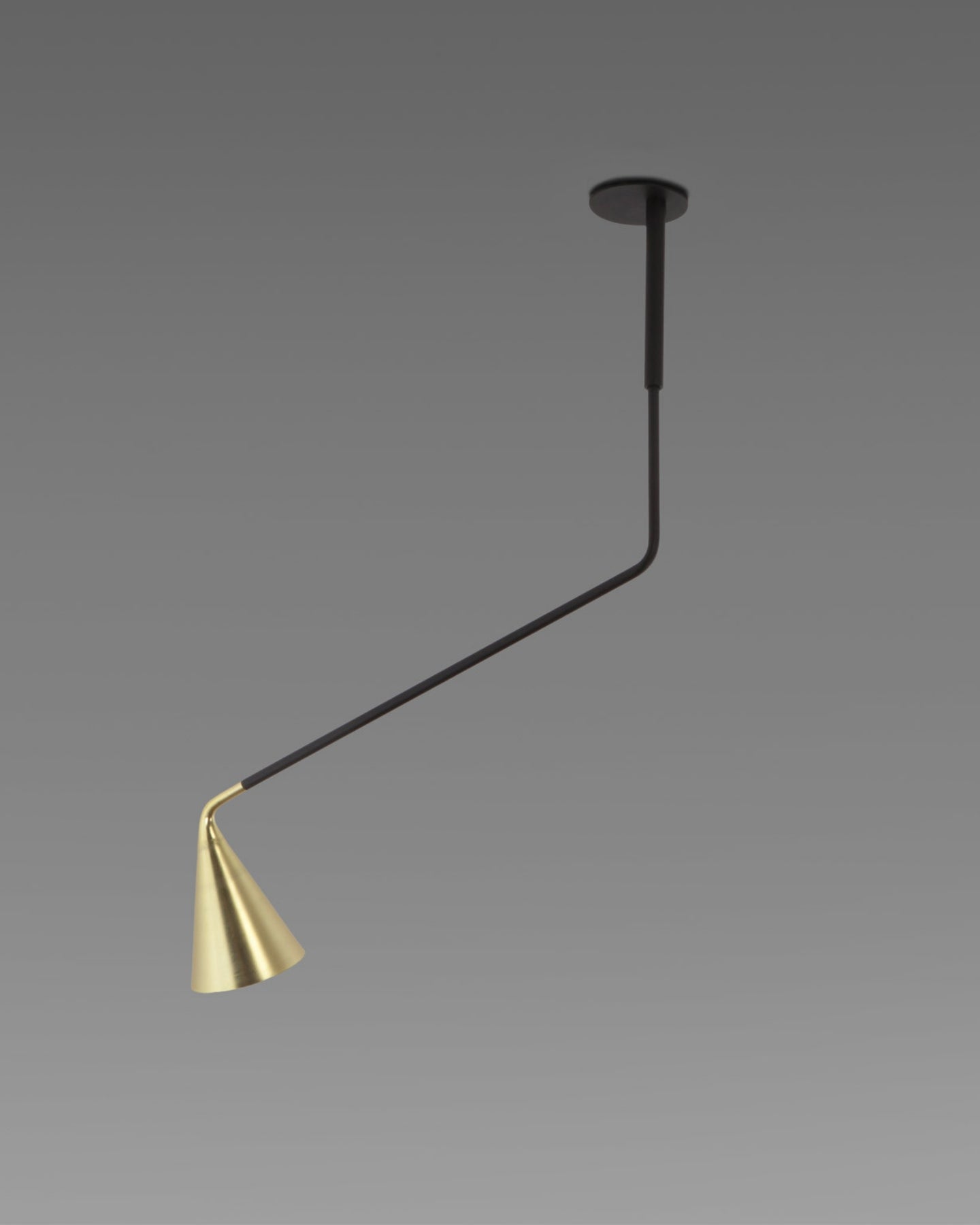 Suspended over a sofa in a living room, over a table in a dining room or in an office, this pendant will nicely diffuse a bright but warm light in the surroundings. Versatile and practical, this light is a true object of design. It features a sleek telescopic rotatable arm structure coated with black epoxy powders and a conical metal shade available in chrome, brass or black finish. Available as well in three different sizes to meet any need, it will easily blend in modern and contemporary interior spaces.