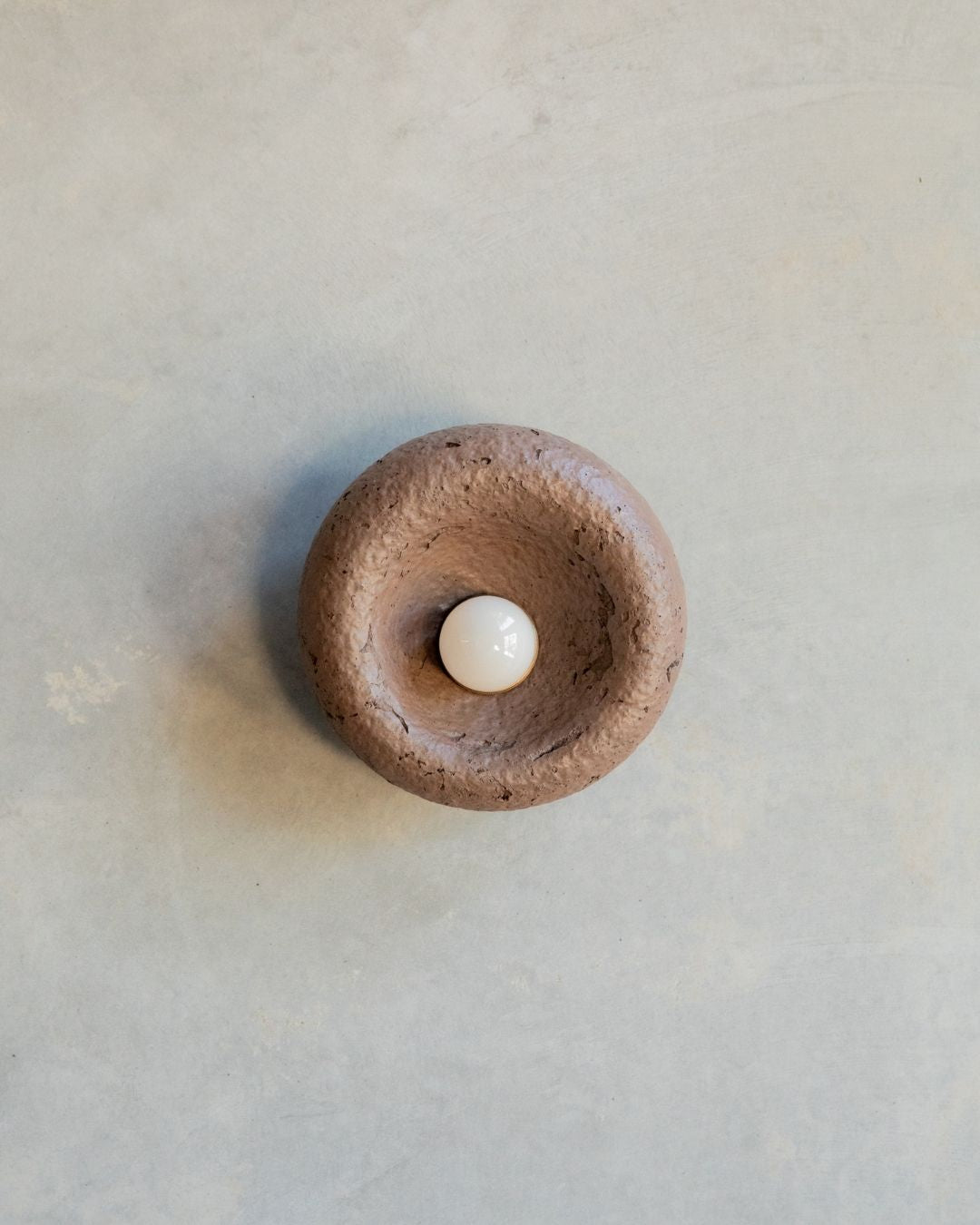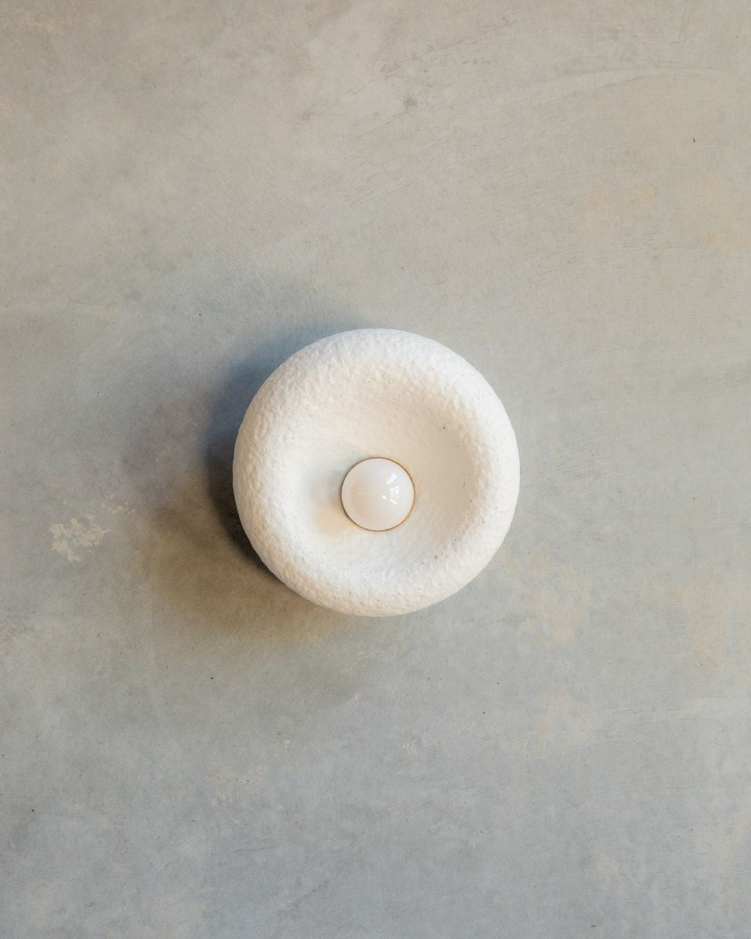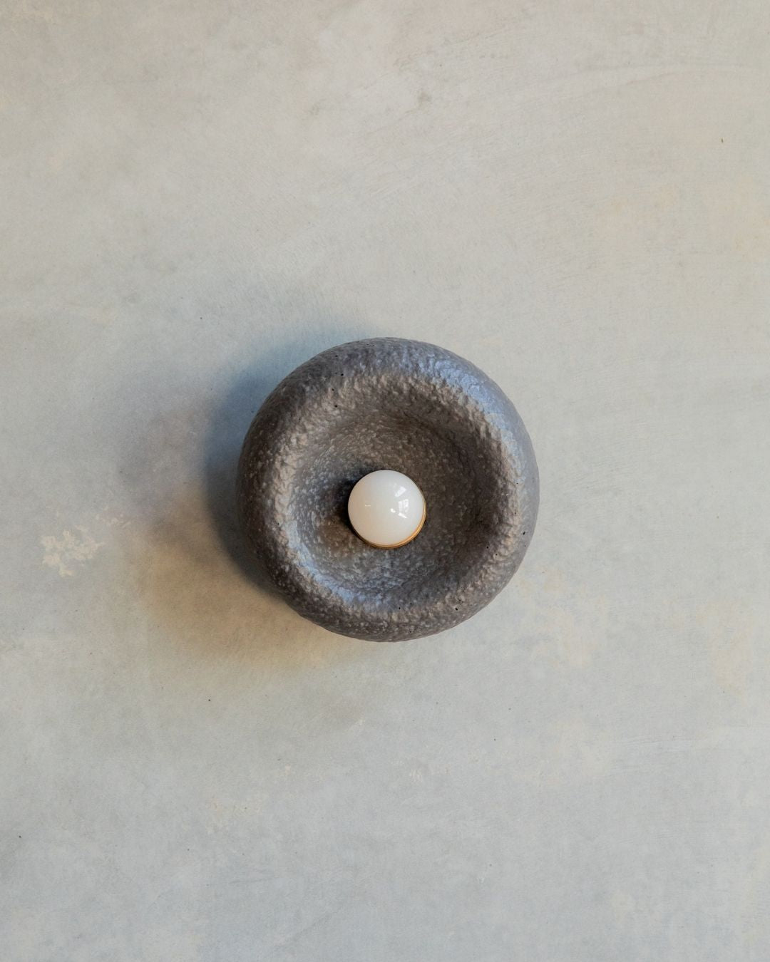 The Rounded Asymmetrical Wall Sconce is a charming fitting designed and crafted in the Northern Rivers. Featuring a rounded shape with an off-centre concave area for the light bulb, this unique sconce comes in seven shade finishes and three metal fittings finishes. Made using concrete and glass fibres, the fitting creates interest with its textured surface, ideal for children's rooms, commerical spaces and powder rooms.