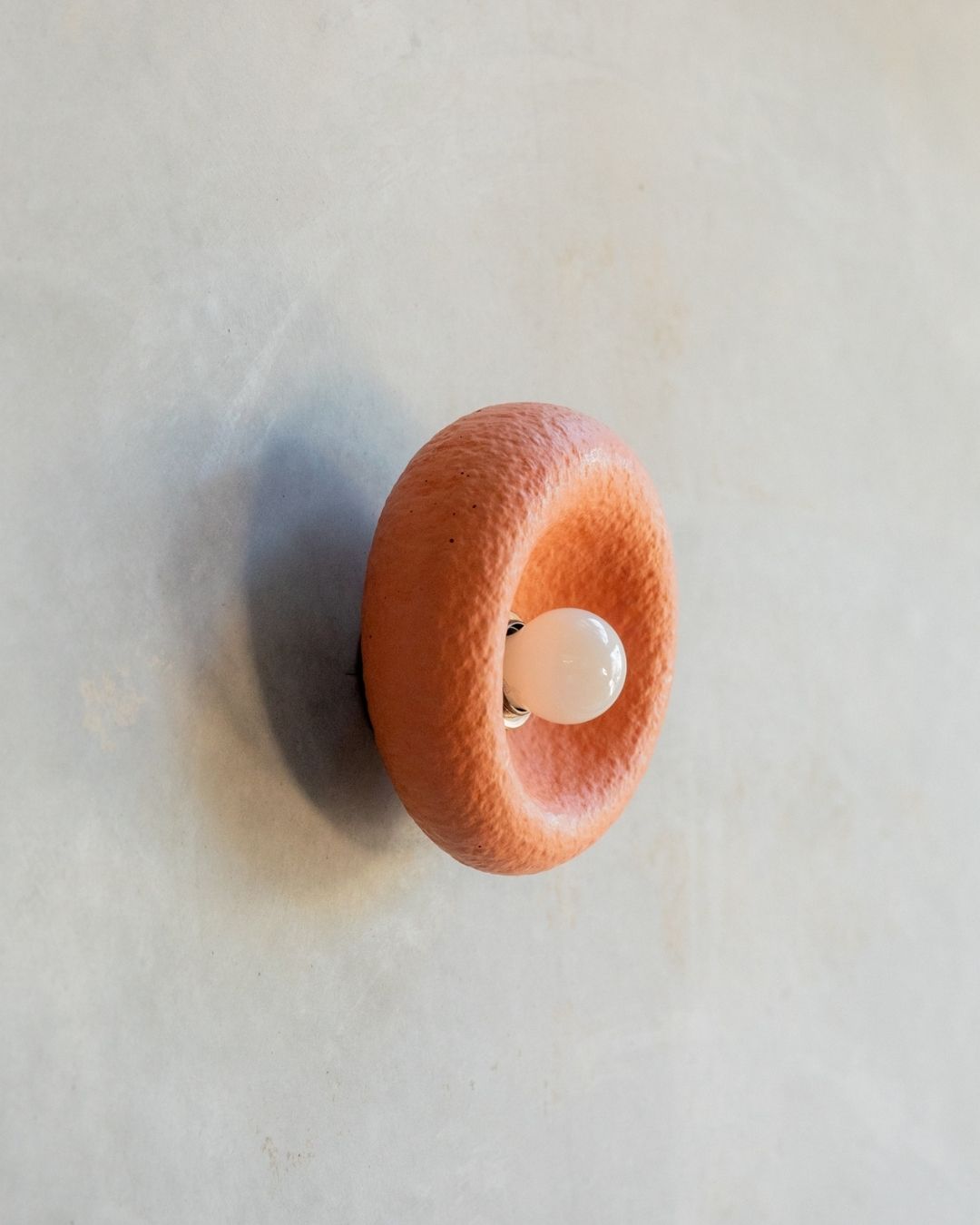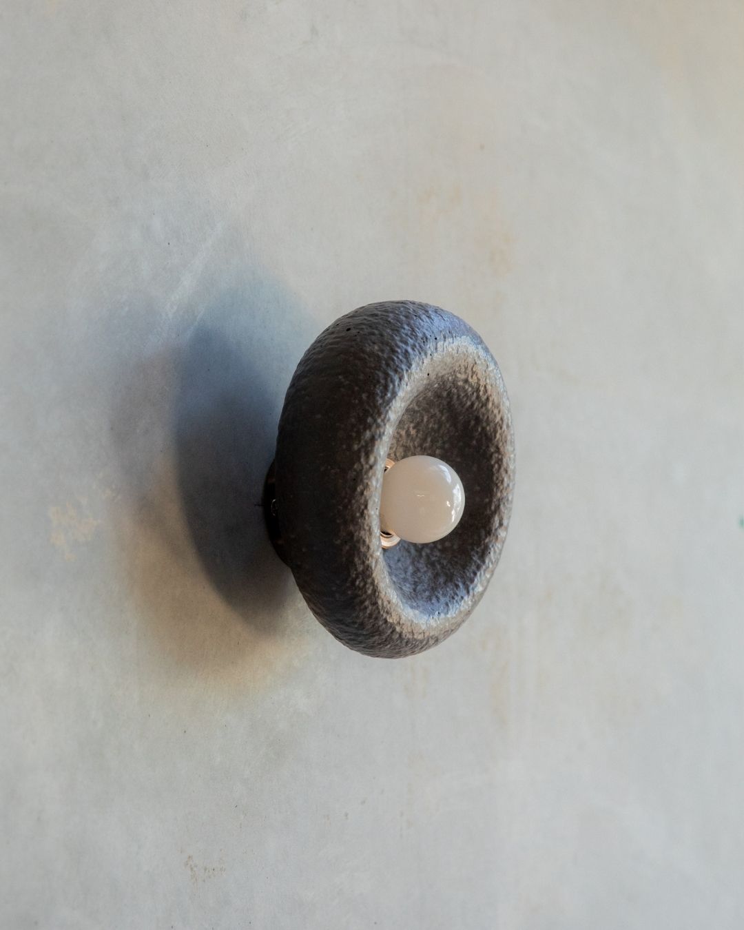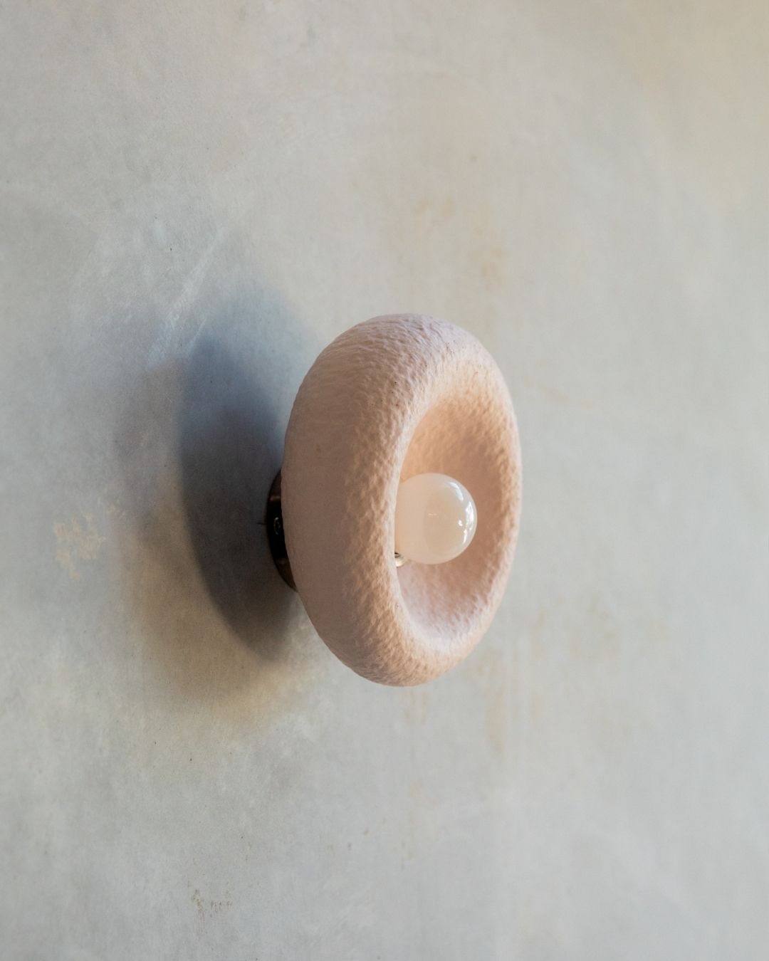 The Rounded Asymmetrical Wall Sconce is a charming fitting designed and crafted in the Northern Rivers. Featuring a rounded shape with an off-centre concave area for the light bulb, this unique sconce comes in seven shade finishes and three metal fittings finishes. Made using concrete and glass fibres, the fitting creates interest with its textured surface, ideal for children's rooms, commerical spaces and powder rooms.