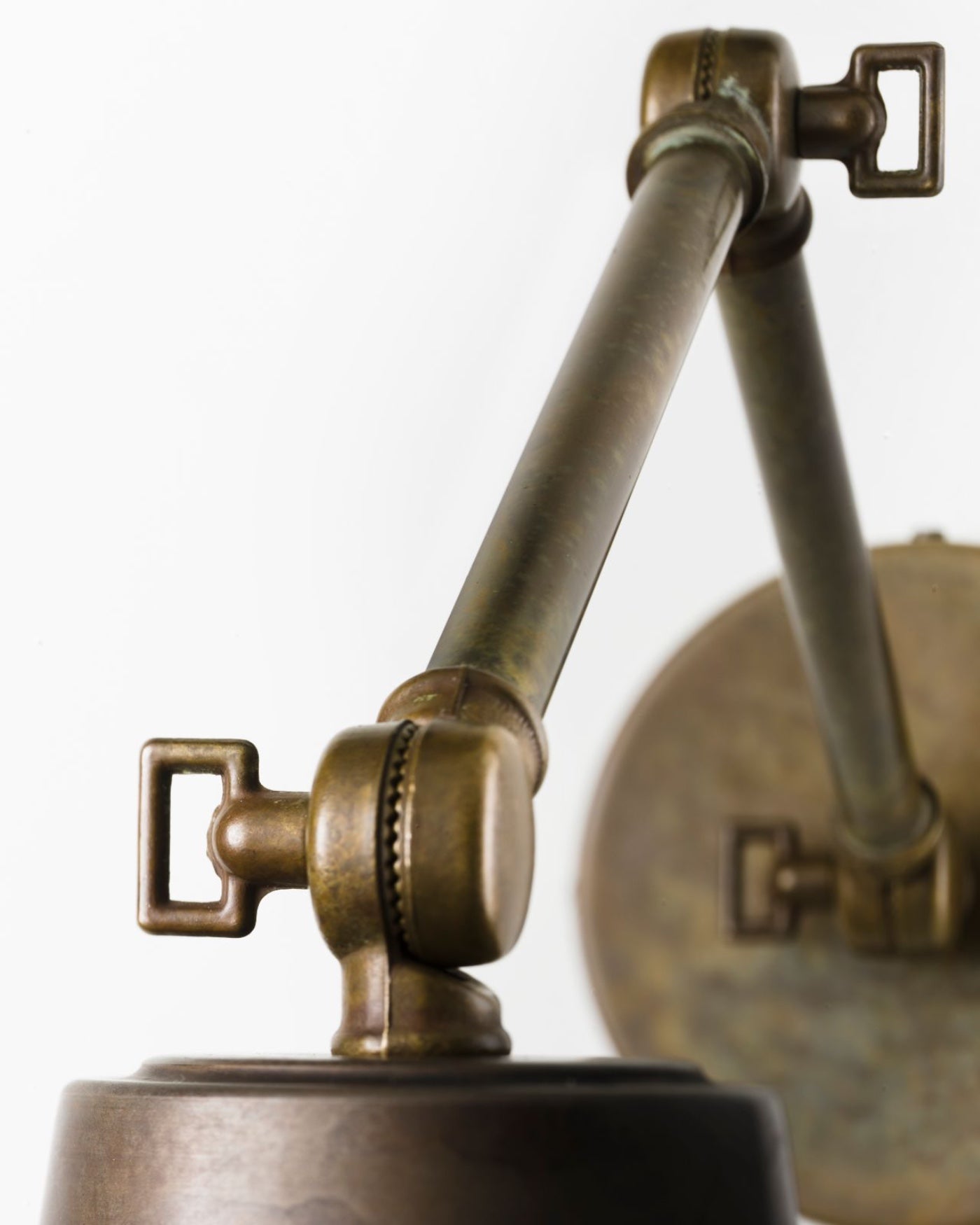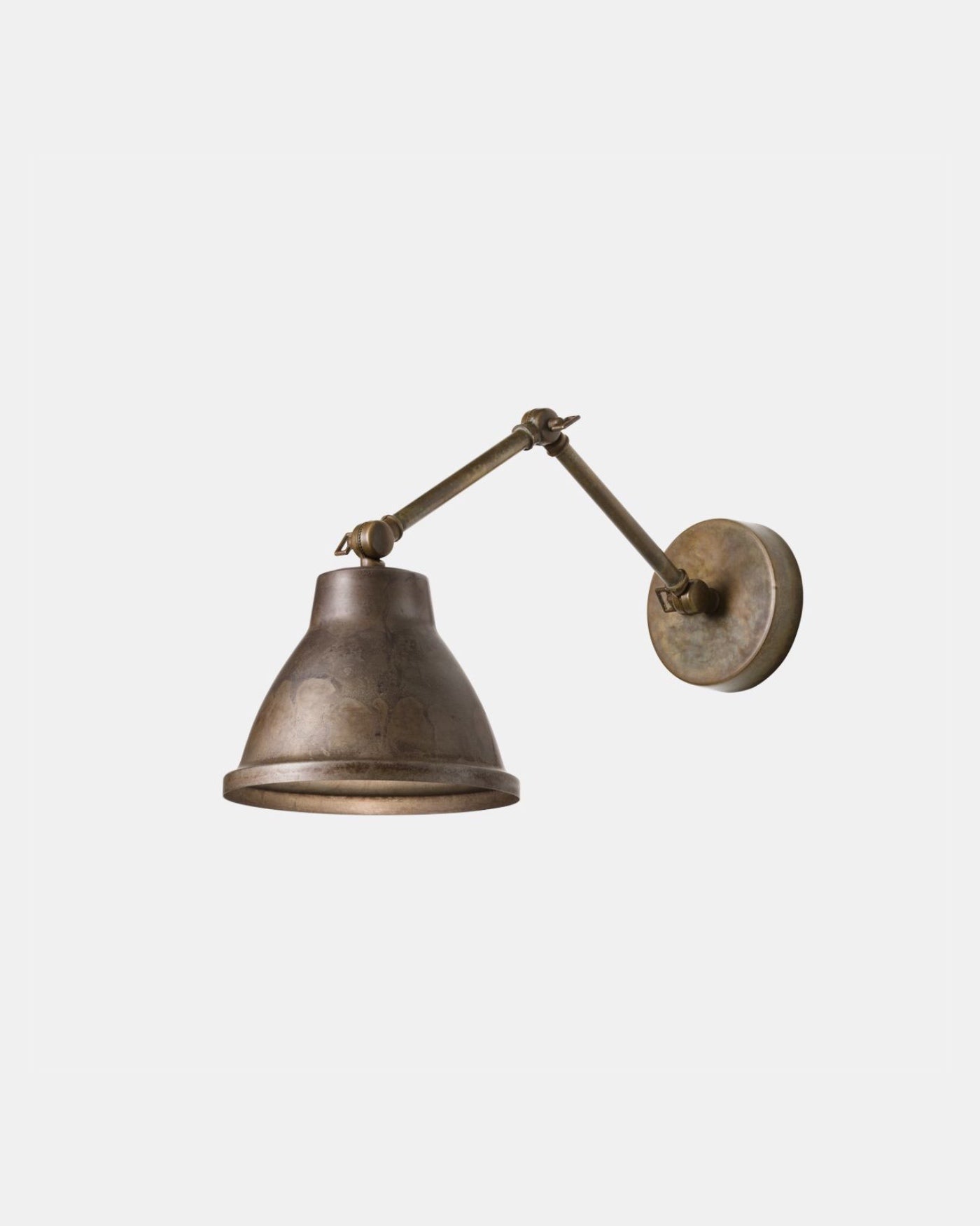Constructed from solid brass and iron using traditional artisan techniques, this unique wall light will last the test of time. The arm of this wall light features adjustable industrial style joints which allow you to position light to suit your needs, making this a great choice for task lighting.
