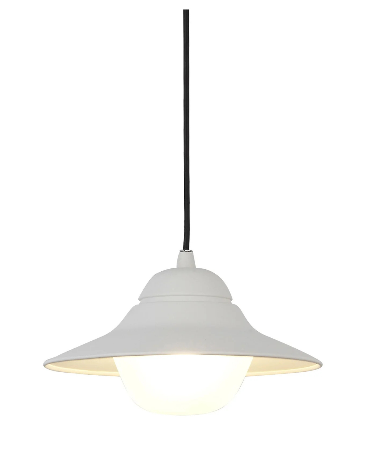 Expertly crafted with a Scandinavian touch, this exterior shade pendant light in a black or white finish boasts a sleek aluminium shade that effortlessly blends into almost any outdoor setting. With an IP44 rating, use this fitting inside or outside.
