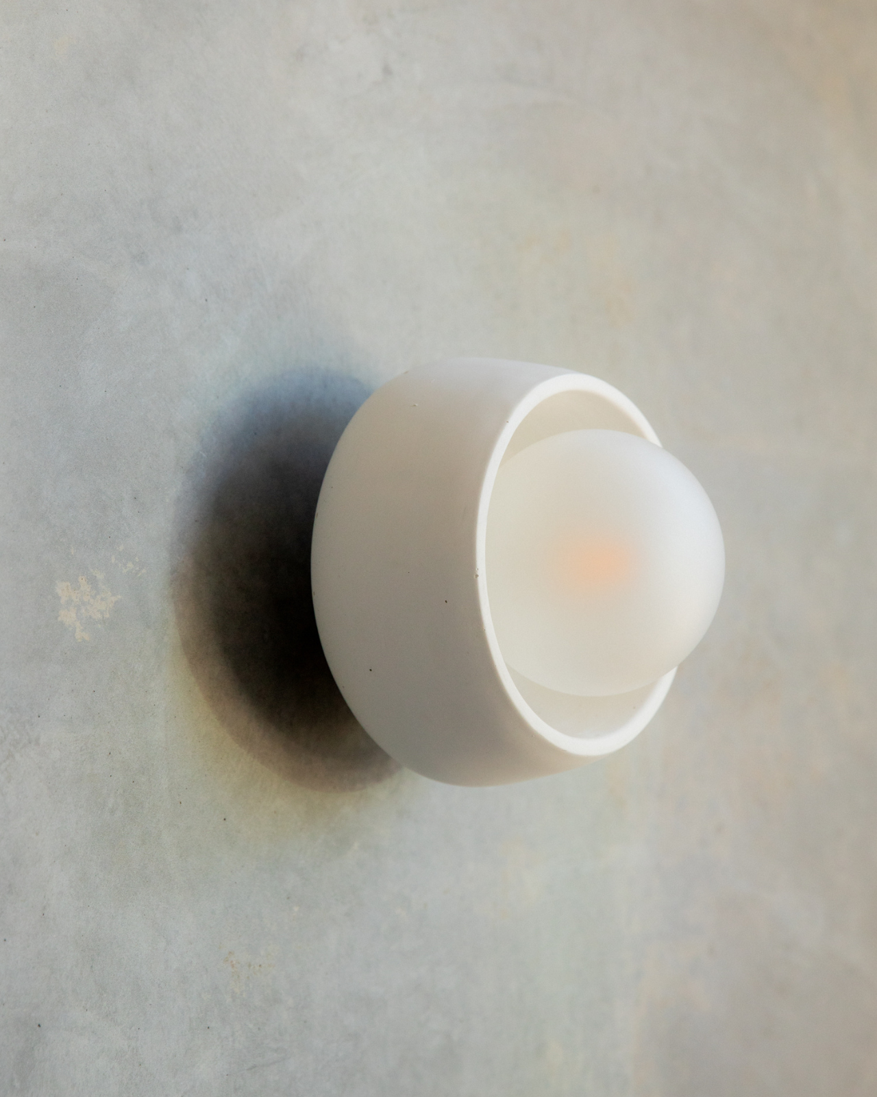 The Sculptural Bowl Wall Sconce is a concrete wall fitting available in seven finishes, each created using iron oxide pigments. Designed and crafted locally in the Northern Rivers, the fitting is hand-poured into custom moulds using an advanced blend of concrete and glass fibres, then left to cure over seven days for strength and durability.