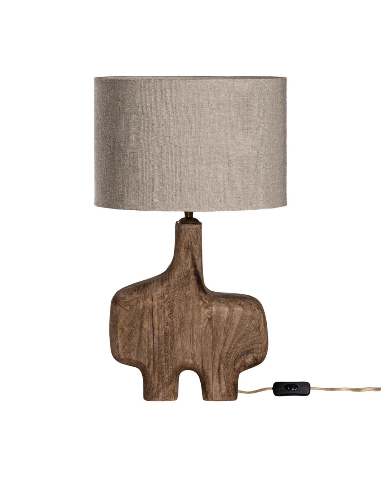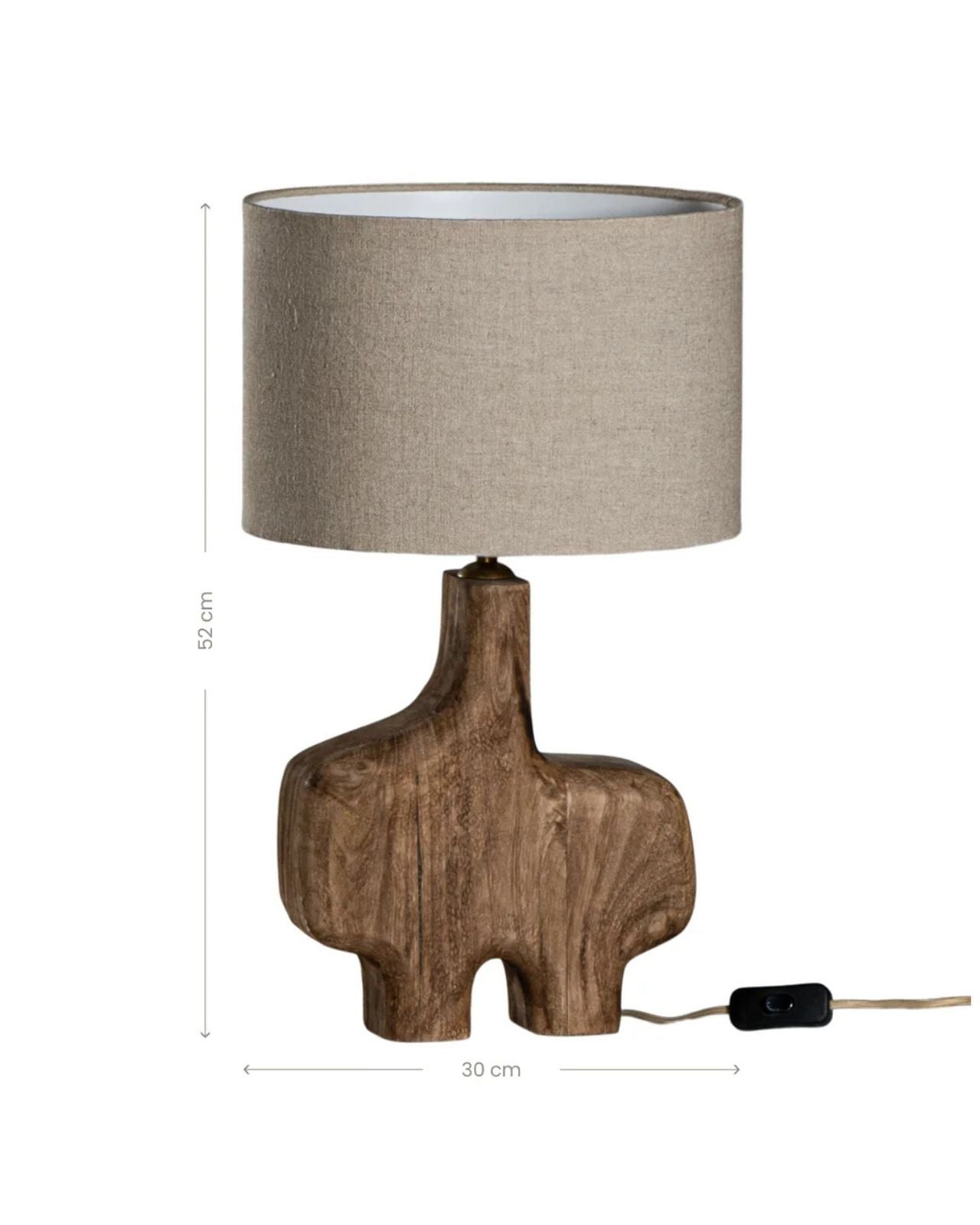 MatieralHand-Carved Mango Wood Base | Linen Lampshade