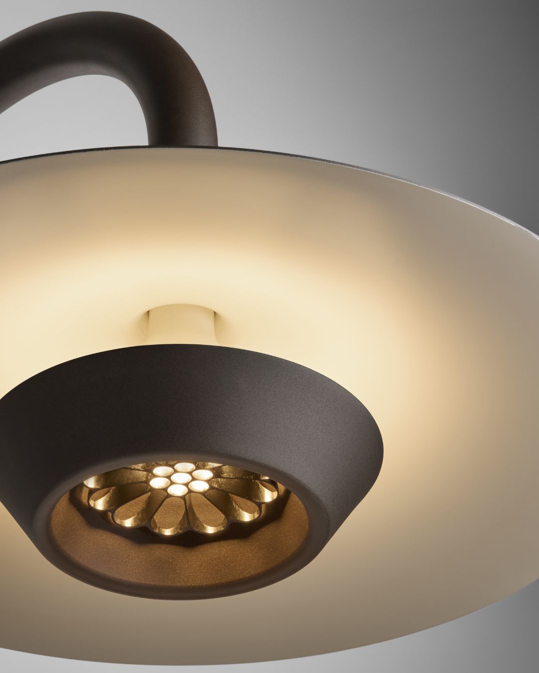 Crafted in Barcelona, this Spanish Curved Arm Wall Light combines contemporary design with durability. Featuring two light sources that operate independently or together, it delivers three different lighting configurations to suit a variety of spaces. With an IP44 rating, this light is designed for protected exterior applications, but will look modern and refined indoors as well. Available in dark brown with a white interior finish.