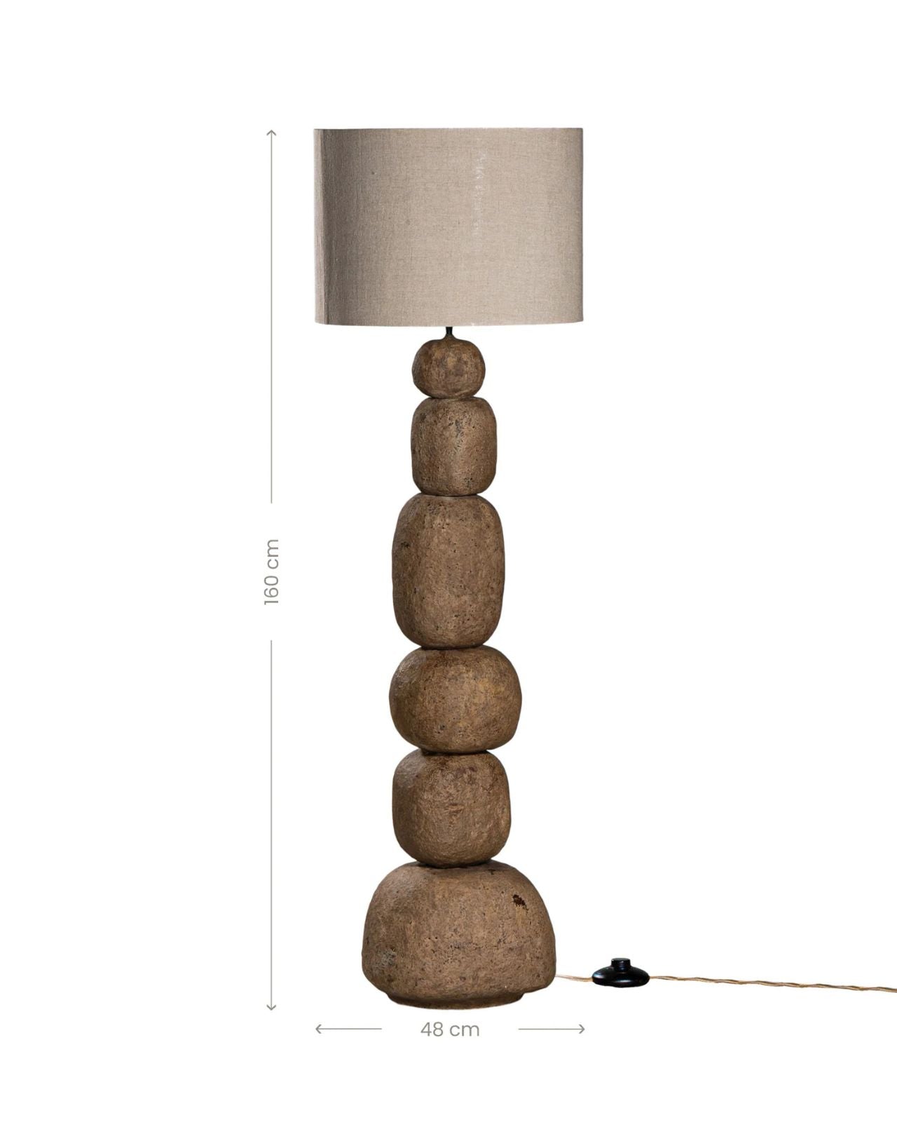 The Stacked Pebble Floor Lamp is meticulously handcrafted, making each piece unique and one-of-a-kind. Crafted from eco-friendly paper mache, this lamp is lightweight with a textured organic appearance. Inspired by the formation of stacked prayer stones, this floor lamp is ideal for organic or coastal interiors. This floor lamp features a rope-covered power cord and linen shade. Available in a Dark or Light Roast finish.