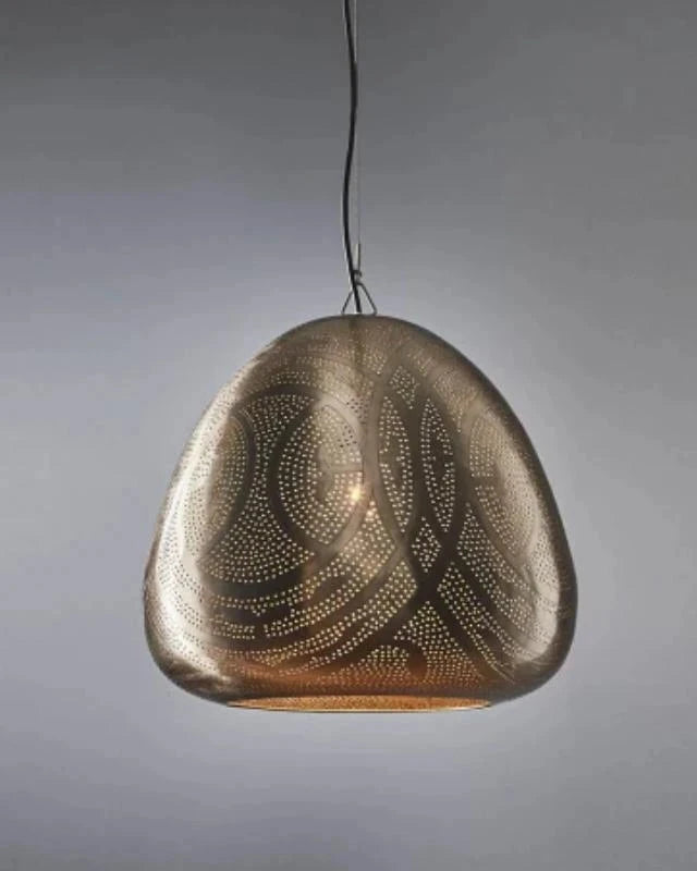 Transform interiors with a masterpiece of light and shadow. This elegant nickel pendant features a striking dome silhouette, meticulously hand-punctured with thousands of delicate perforations. When illuminated, it casts a dramatic, starlit glow that instantly personalizes your space with an inviting, ambient warmth. A sophisticated fusion of Mediterranean heritage and contemporary flair, this statement piece is designed for those who view lighting as functional art.