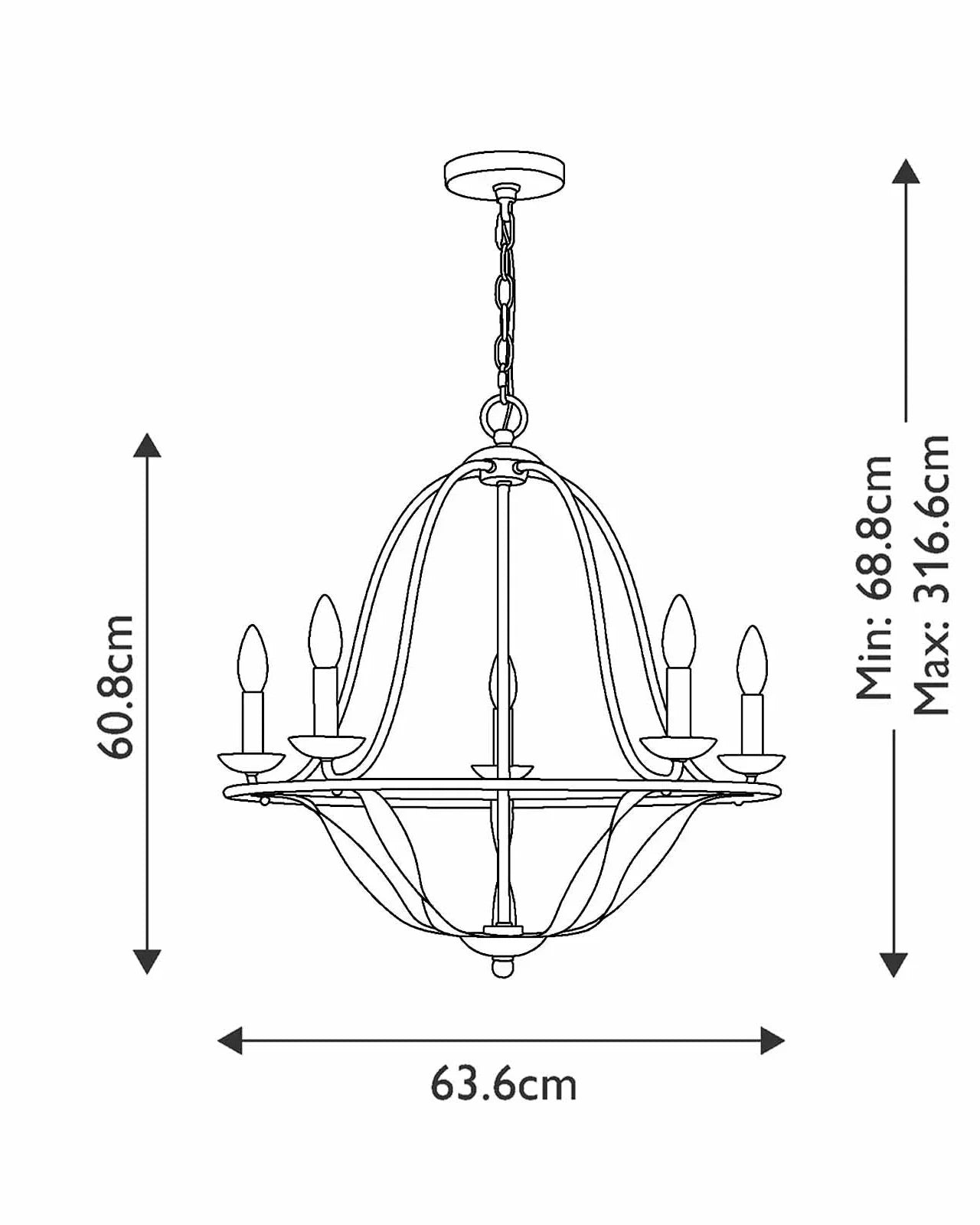 | Diameter | 4 Light | 405mm 5 Light | 636mm |