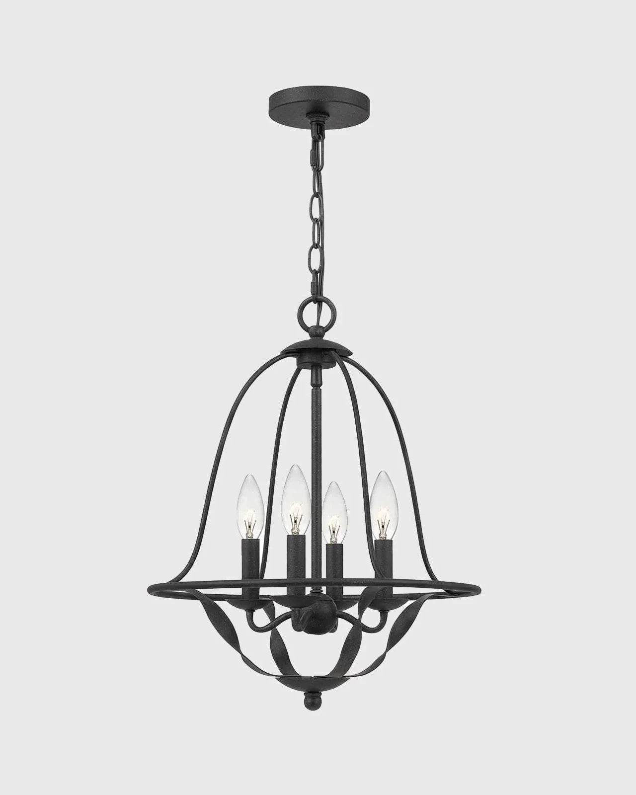 Traditional Caged Pendant Light - Grey / 4 Lights