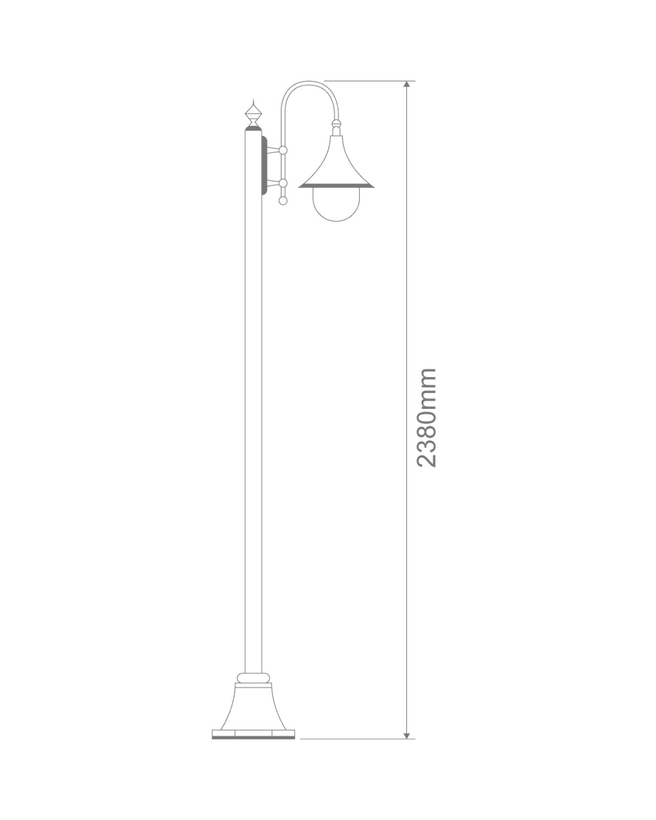 Constructed in Italy and assembled in Australia, this curved single head street light showcases a durable die-cast aluminium body and a molded acrylic lens. Equipped with an E27 lamp and energy-saving LED bulbs, it comes with a 1 year warranty for replacement. Also offered in assorted finishes and with 1, 2, or 3 light options.
