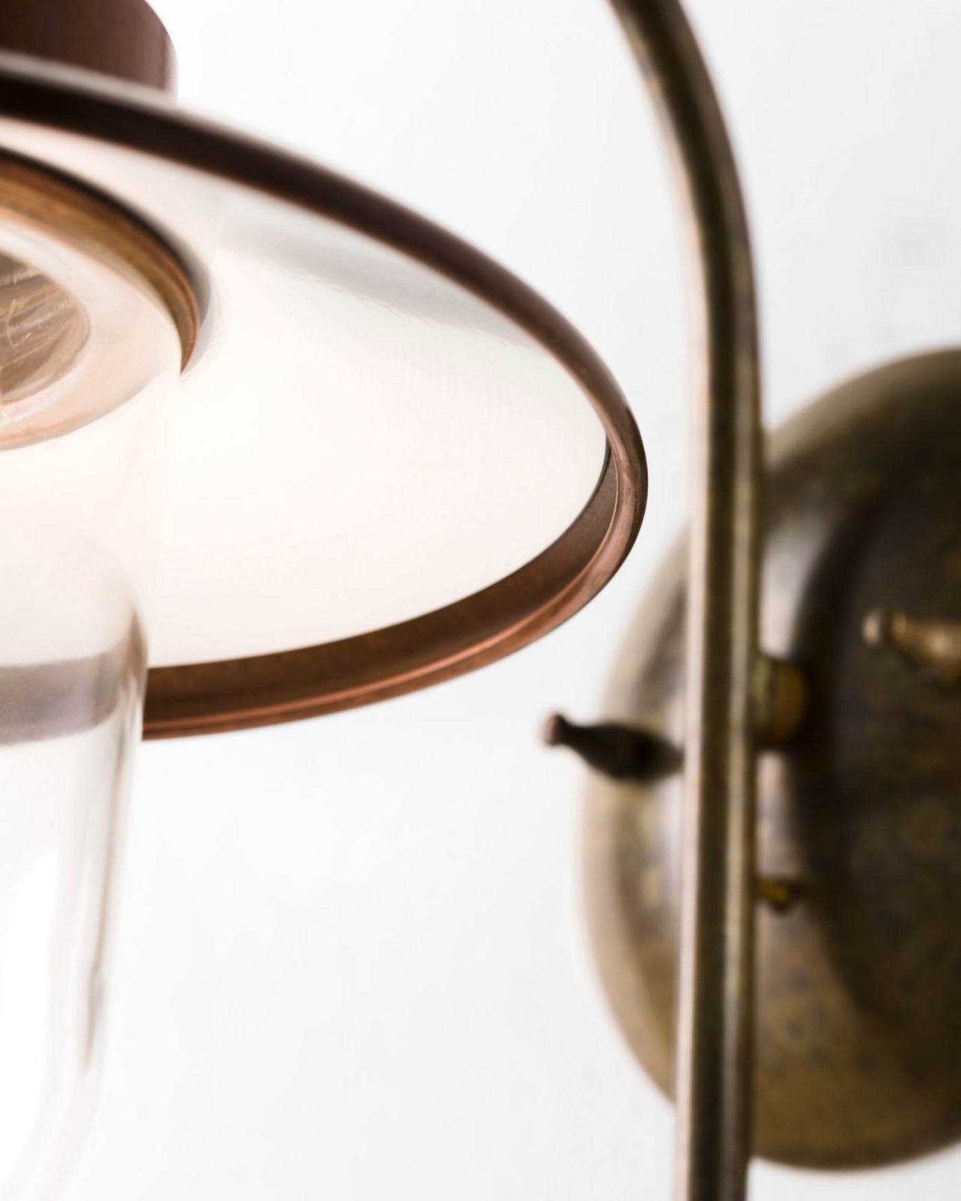 Close up of pre-aged brass and copper finish on calmaggiore wall light