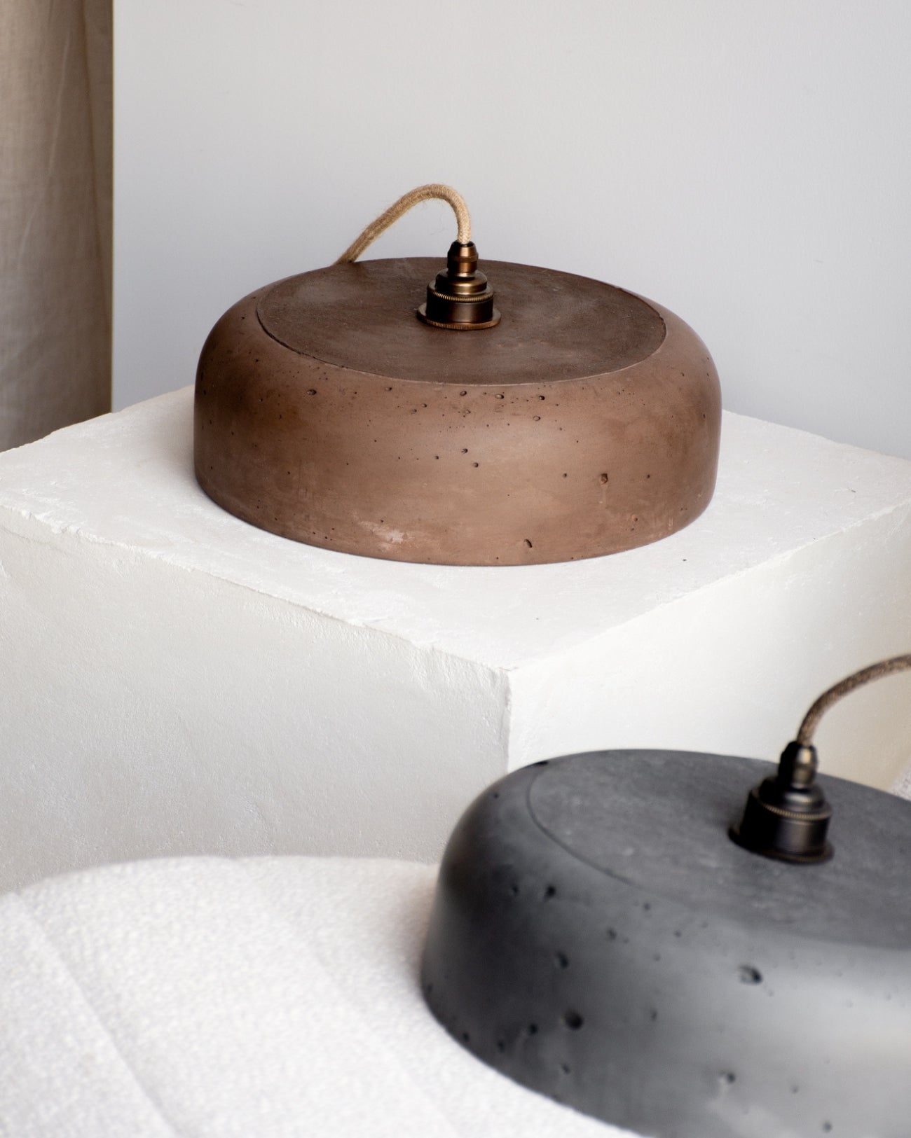 The Wide Bowl Concrete Pendant, made locally in Ballina, is a simple pendant available in seven different shades. Made from concrete and reinforced with glass fibres, this fitting is durable without compromising design. Ideal as a focal piece in a dining space or living room, this pendant is suitable for most interiors, with different metal finishes and cables to choose from to better suit the area.